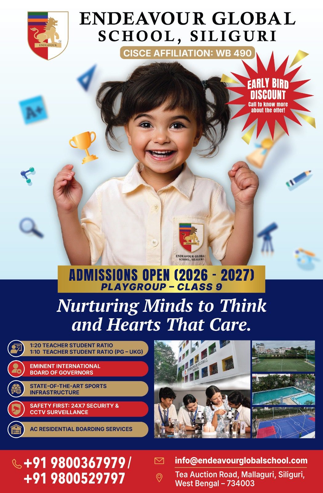 Endeavour Global School is “The temple of learning” situated at the heart of Siliguri Town at Tea Auction Road, Mallaguri.