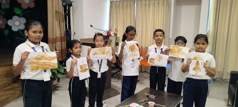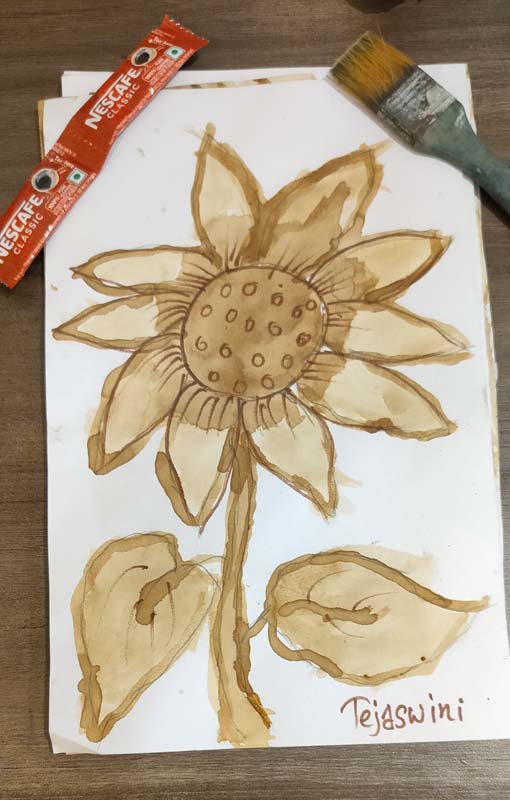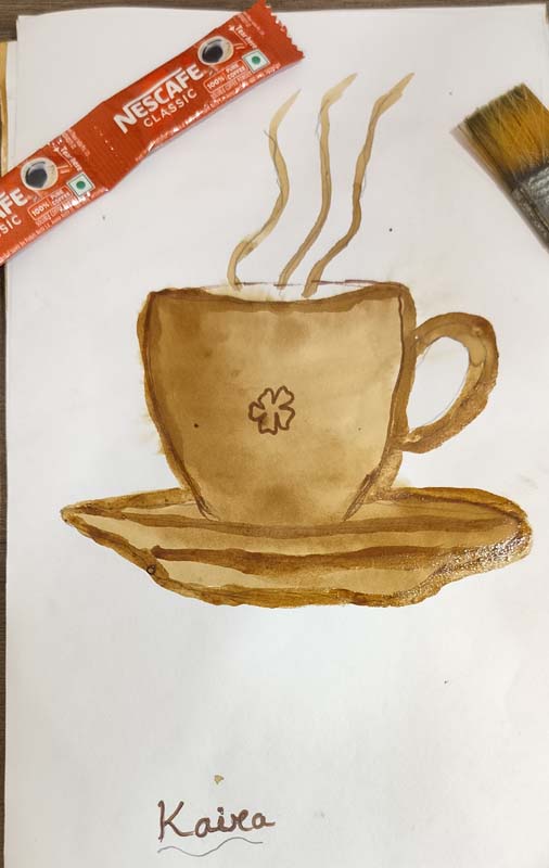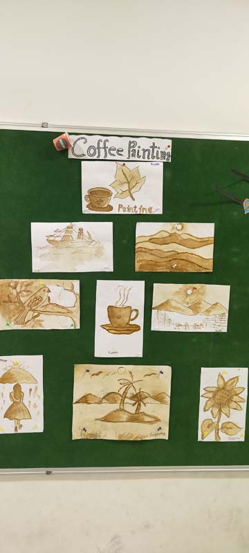 Coffee painting is like watercolour but with the unique depth and texture of a single earthy colour. The children learned to create shading on their papers, enjoying the activity with fun and grace.